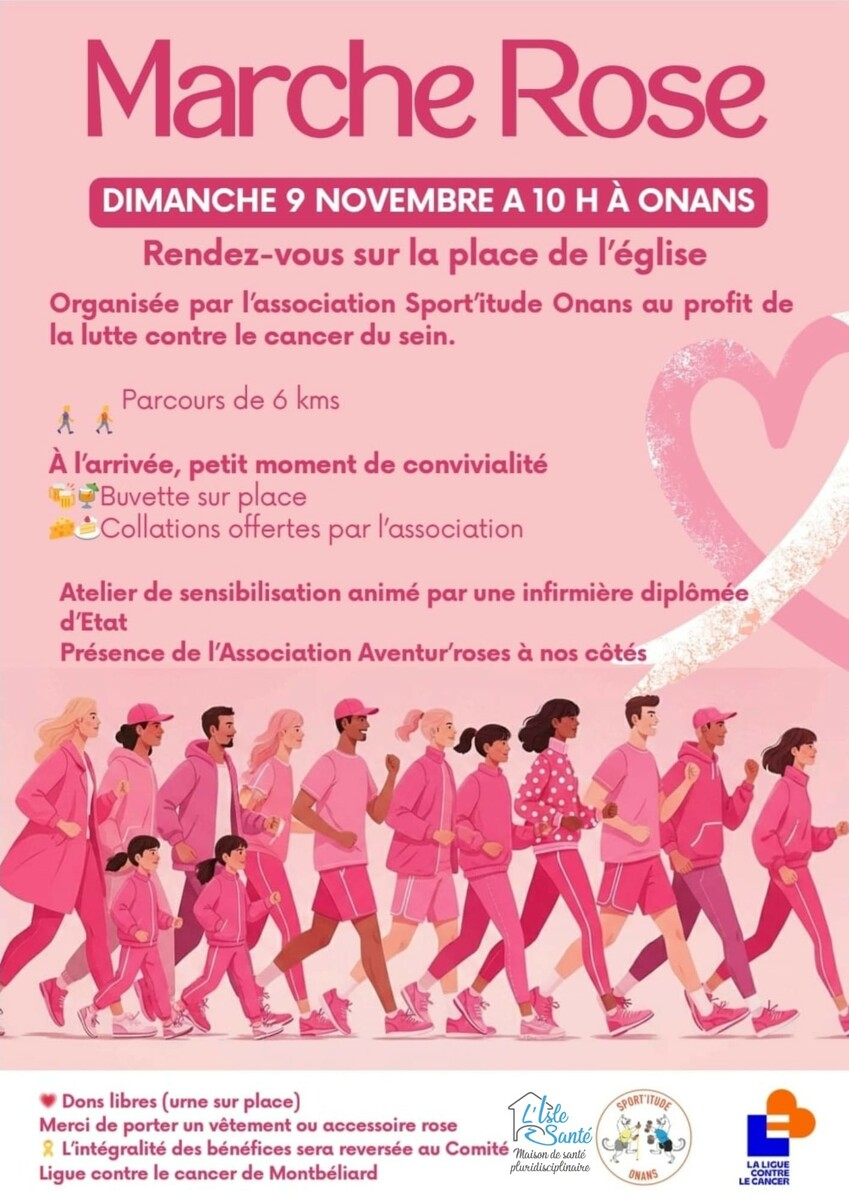 Rejoignez-nous pour la marche rose le dimanche 9 novembre à Onans, en partenariat avec la Ligue contre le cancer.